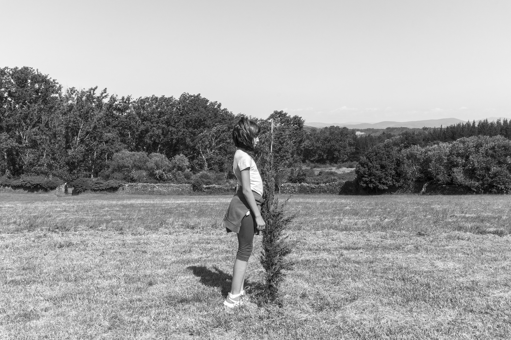 Estes días Violeta acostuma a medirse coas árbores. Será que sinte o seu corpo como medida de todas as cousas ou, como ela di, será que so quere xogar.