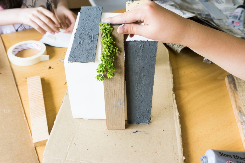 Durante estas Residencias Land Art pude visitar el C.P.I Dr. López Suárez (en Escairón, muy cerca del Pazo Tor, Lugo) para hablarles a los alumnos y alumnas de 4º de primaria de nuestro proyecto «Dogma natura [violeta y rosa] o como enseñar land art la una niña» y de como es ser artista y madre hoy. A partir de ahí, les propuse participar en el proyecto a partir de la construcción de una maqueta de la cabaña que les gustaría construir y habitar en un entorno natural realizada a partir de materiales de desecho. En grupos de tres personas, tuvieron que llegar a acuerdos, tomar decisiones y compartir intereses para llegar a hacer las cabañas que presento a continuación.